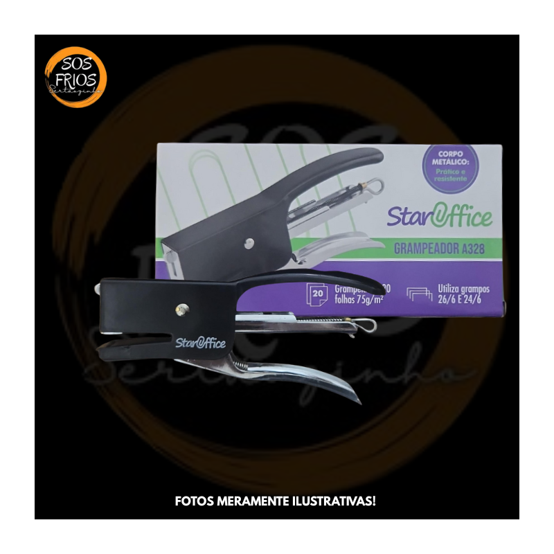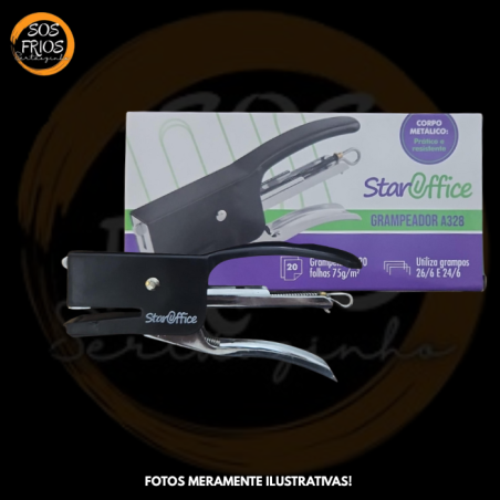O Grampeador tipo alicate Star Office é uma ferramenta de escritório manual usada para unir folhas de papel com grampos, operando por pressão tipo alicate. É indicado para uso cotidiano em escritórios, escolas e em tarefas administrativas leves. Sua vantagem está na ergonomia e praticidade, especialmente para grampear em locais onde grampeadores de base não alcançam. Deve ser utilizado com o tipo de grampo adequado (ex.: 24/6 ou 26/6) e respeitando a capacidade máxima de grampeamento para evitar danos.