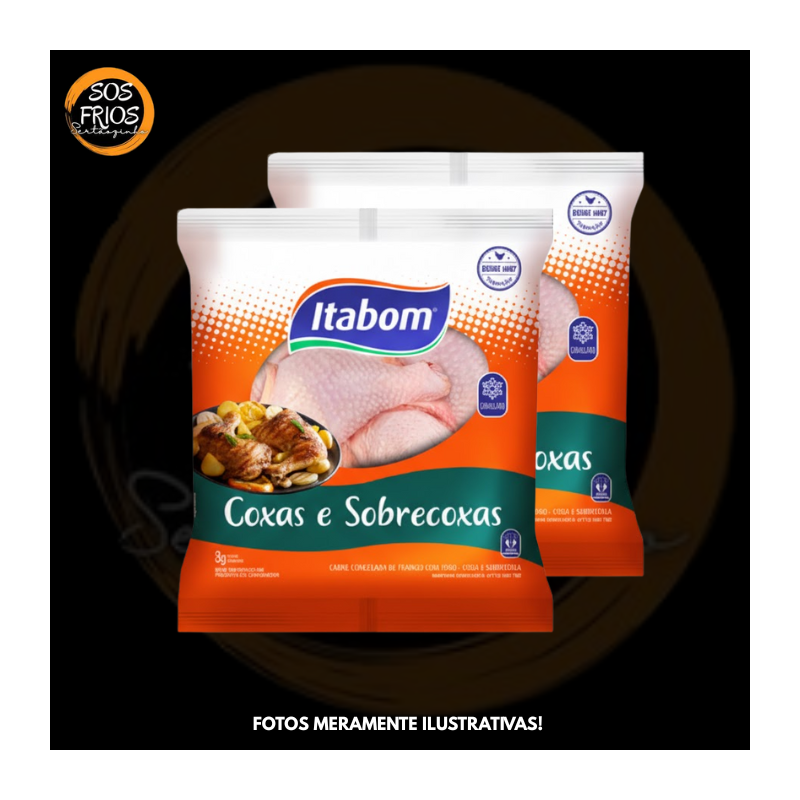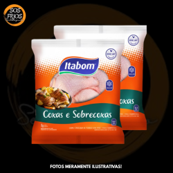 Frango congelado da marca Itabom, cortes de coxa e sobrecoxa com osso, prontos para assar, fritar ou grelhar. Ideal para uso doméstico ou comercial em porções ou pratos com custo-benefício.