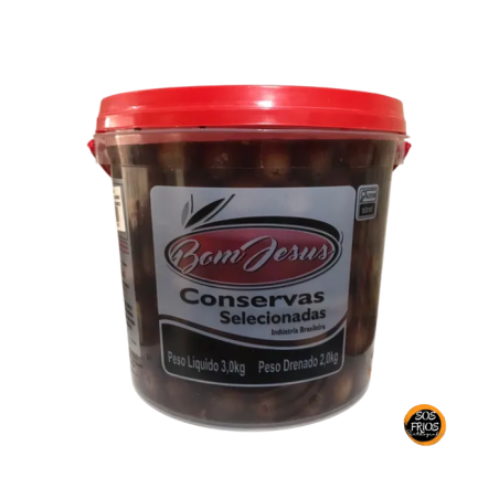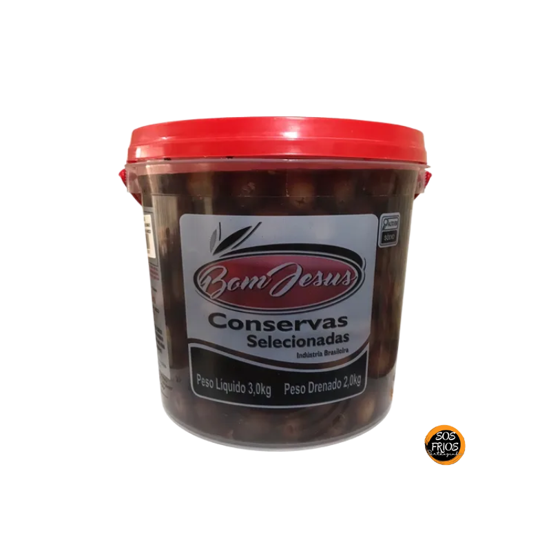 Conserva saborosa de azeitonas pretas em salmoura, com baixo teor de calorias e carboidratos.