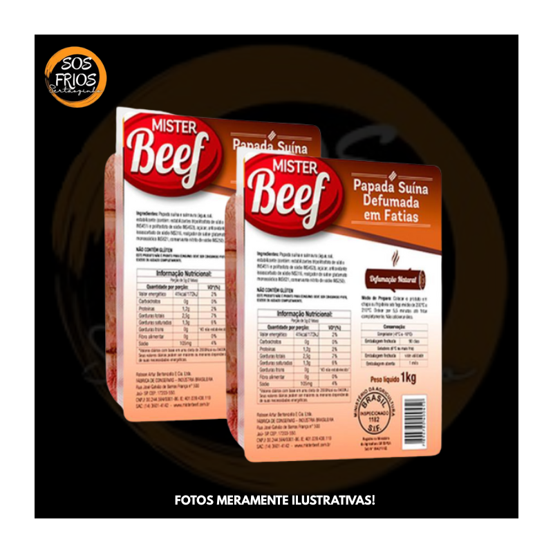 Bacon Fatiado Medalhão Mister Beef 1 kg: Bacon defumado de alta qualidade da marca Mister Beef, originado da papada suína, com corte em fatias estilo “medalhão”. Ideal para grelhar, churrascos ou pratos onde o bacon seja destaque, pela sua defumação natural com madeiras nobres.