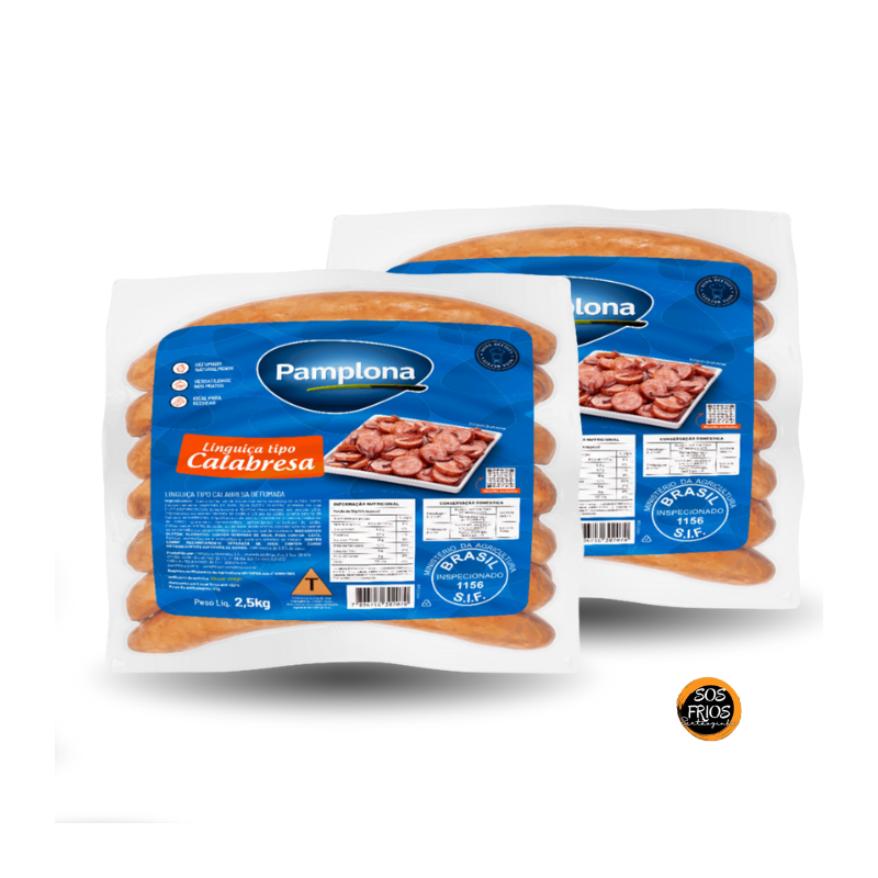 A Calabresa Pamplona é um embutido suíno temperado e defumado, bastante utilizado em churrascos, pizzas, sanduíches e pratos prontos. É rica em sabor, com teor elevado de gordura e sódio, além de boa quantidade de proteína. Pelo processamento (defumação/cozimento), já vem pronta para consumo, mas por seus componentes deve-se consumir com moderação, especialmente em dietas com restrição de sódio ou gordura saturada.