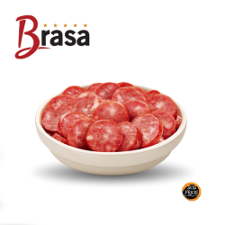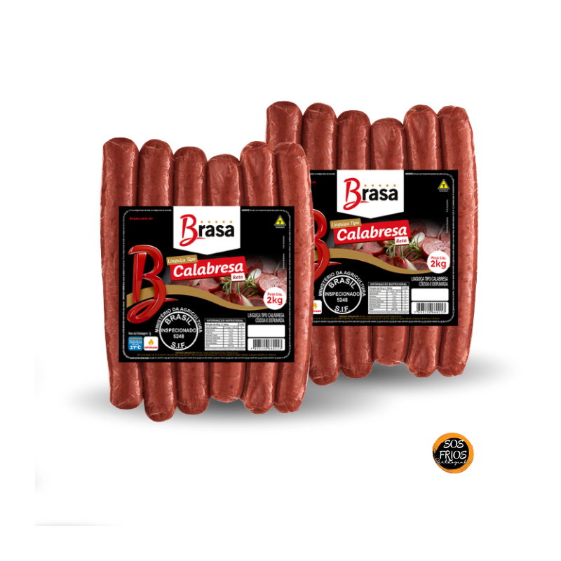 A Calabresa Reta Brasa é uma linguiça tipo calabresa, defumada/cozida, preparada com carne suína e outros ingredientes típicos como especiarias, sal e gordura. É um produto com sabor marcado e perfil energético elevado, por conta do conteúdo gorduroso. Destaca-se pelo alto teor de proteínas, mas também pelo elevado sódio, o que é comum em embutidos desse tipo. Indicado para uso em churrascos, frituras, pizzas, ou pratos onde o sabor da calabresa seja desejado. Deve ser consumido com atenção em dietas restritas de sódio ou gordura.