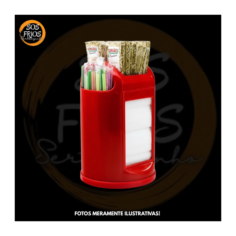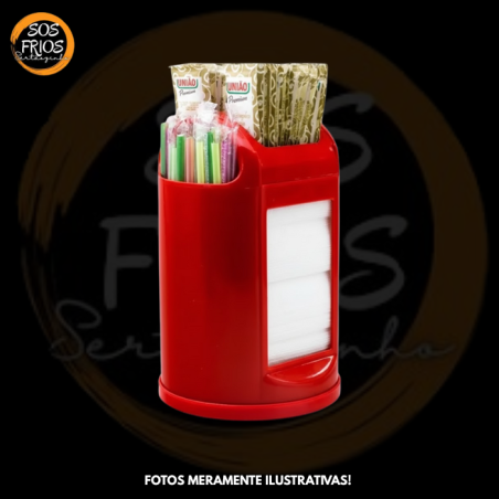 Porta Canudo/Guardanapo Kit 3 em 1 Vermelho: