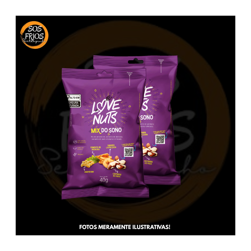 O Mix Castanhas Love Nuts 40g Amêndoas Mix do Sono combina amêndoas e castanhas selecionadas, oferecendo um snack nutritivo, saboroso e prático. Ideal para lanches, pequenas porções ou como complemento em receitas, contribuindo para o bem-estar e energia do dia a dia.