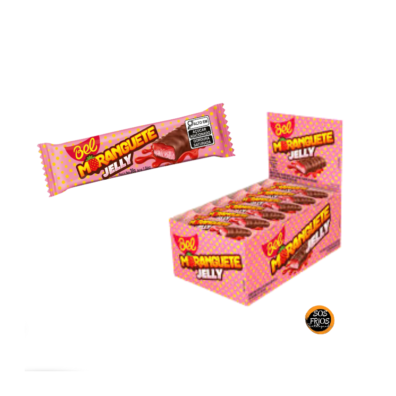 hocolate Moranguete Jelly 30g é um bombom recheado com geleia sabor morango, envolto por uma camada cremosa de chocolate ao leite. Ideal para quem busca um doce com textura macia e sabor marcante de morango com chocolate.