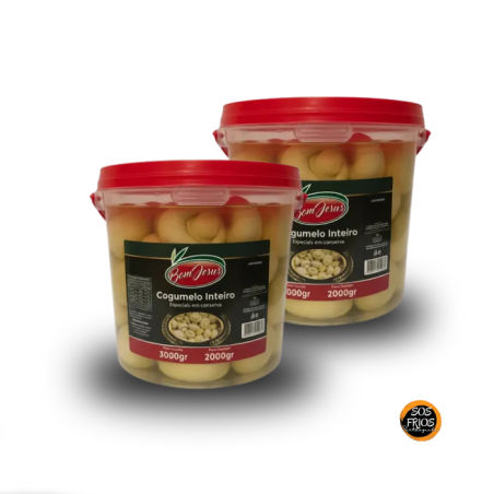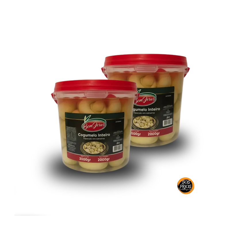 O Cogumelo Champignon Inteiro Bom Jesus (balde 2 kg) é um cogumelo conservado em salmoura (água, sal e ácido cítrico), comercializado em balde para uso em food service, cozinhas industriais e preparo de grandes volumes.