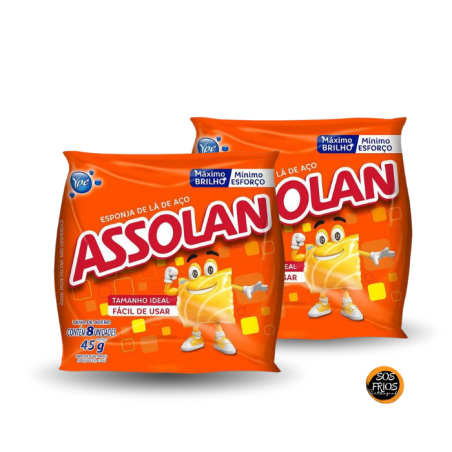 O Esponja de Aço Assolan 45g é uma lâ de aço metálica desenvolvida para limpeza pesada, ideal para remoção de resíduos incrustados em panelas, grelhas e utensílios. Sua estrutura em aço carbono oferece abrasão controlada, com eficiência na remoção de sujeiras difíceis e boa durabilidade.