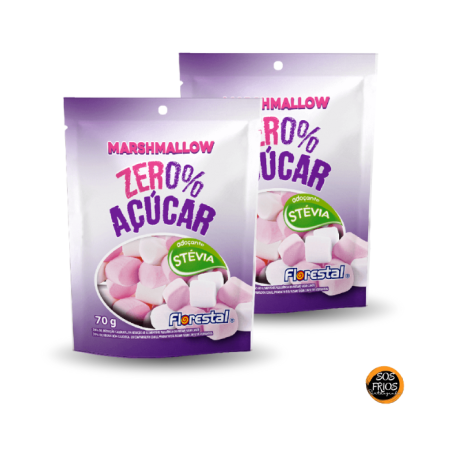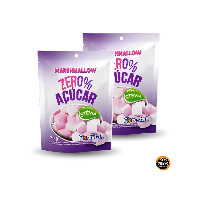 Este é um marshmallow da marca Florestal sem adição de açúcares, adoçado com adoçantes como estévia, isomalt, maltitol e sorbitol. É produto leve, com textura macia, ideal como guloseima para quem busca reduzir ingestão de açúcar ou para dietas com restrição desse ingrediente. Zero gordura, zero sódio e muito baixo teor de proteínas, sendo basicamente composto por carboidratos provenientes dos polióis (adoçantes de baixíssimo valor glicêmico). Não contém glúten.