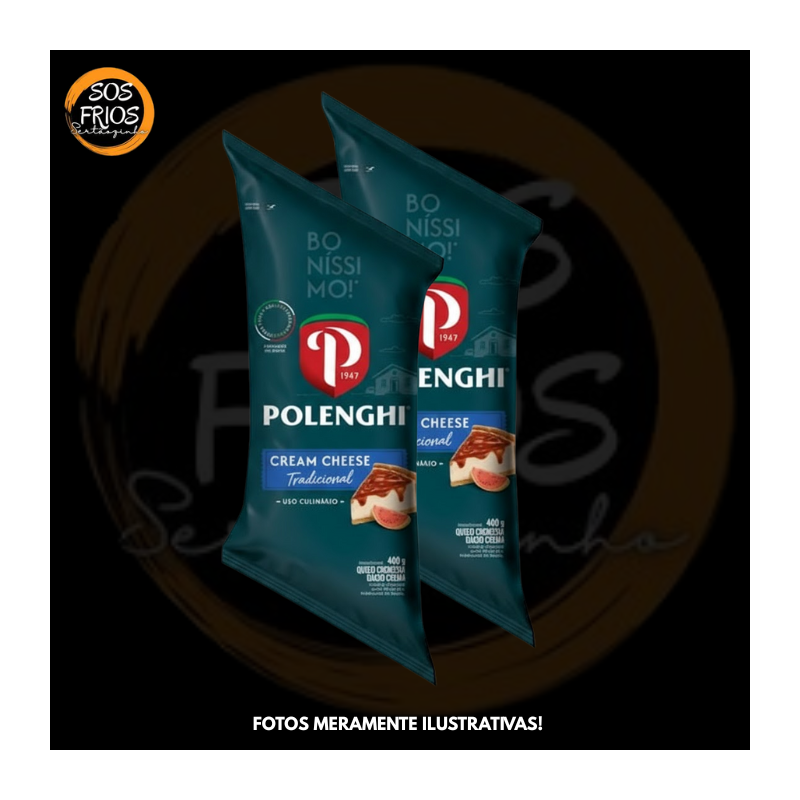Cream cheese tradicional da marca Polenghi em embalagem bisnaga de 400 g, com textura cremosa, sabor suave e versátil para uso em lanches, bolos, recheios e preparo culinário em estabelecimentos comercial ou doméstico.