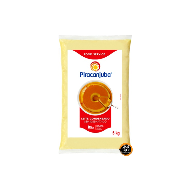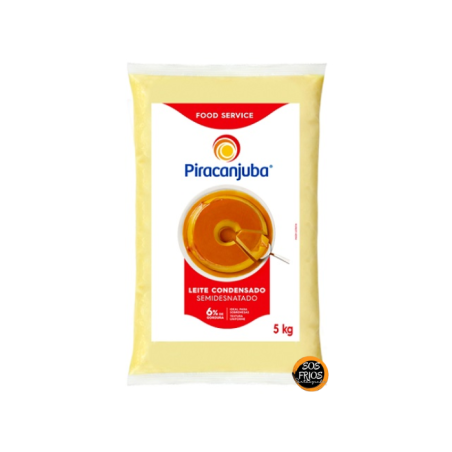 O Leite Condensado Semidesnatado Piracanjuba (5 kg) é uma versão mais leve do tradicional condensado. É formulado com leite semidesnatado, açúcar, leite em pó desnatado e lactose; não contém gorduras trans, nem amido, mas contém lactose e glúten está ausente. É indicado para uso culinário em larga escala e, após aberto, deve ser mantido refrigerado entre 1 °C e 10 °C e consumido em até 7 dias.