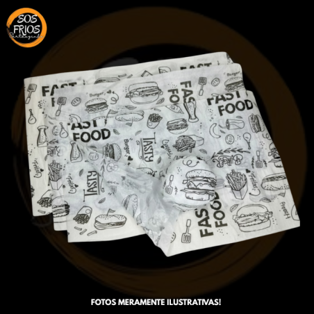 — pacote com 400 folhas de papel acoplado da marca Fênix, medindo aproximadamente 30 cm × 38 cm cada. Cada folha possui camada plástica aderida ao papel que ajuda a reter gordura e umidade, tornando o produto adequado para embalar lanches, hambúrgueres, sanduíches, porções fritas ou frios em padarias, lanchonetes e food‑services.