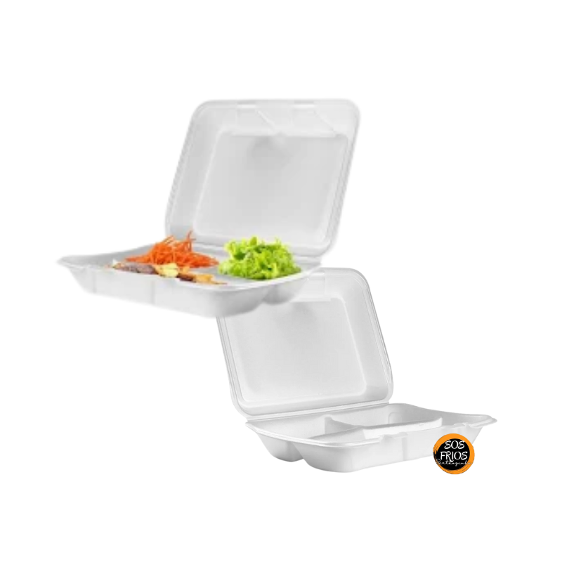 A Hamburgueira 132 com 3 divisórias é uma embalagem prática, resistente e higiênica, ideal para acomodar hambúrguer, batata frita e acompanhamentos separadamente.