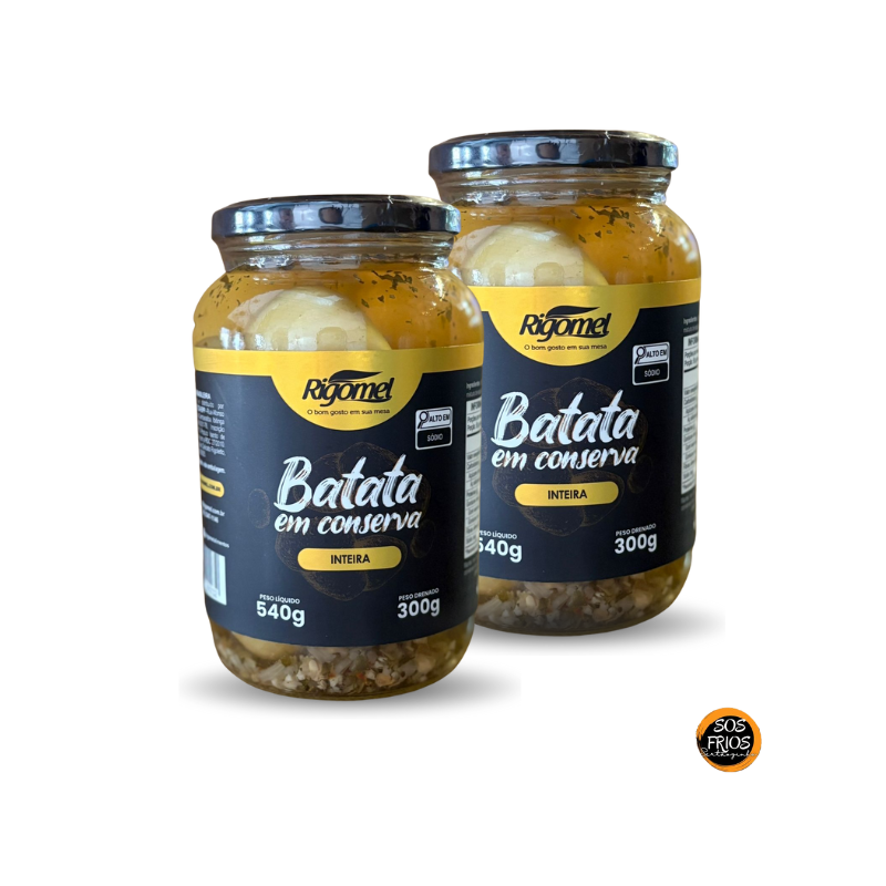 A Batata em Conserva Inteira Rigomel é um produto prático e versátil, ideal para saladas, aperitivos, guarnições ou pratos frios. Já cozida e pronta para uso, possui sabor suave e é conservada em salmoura, mantendo textura e qualidade por mais tempo.
