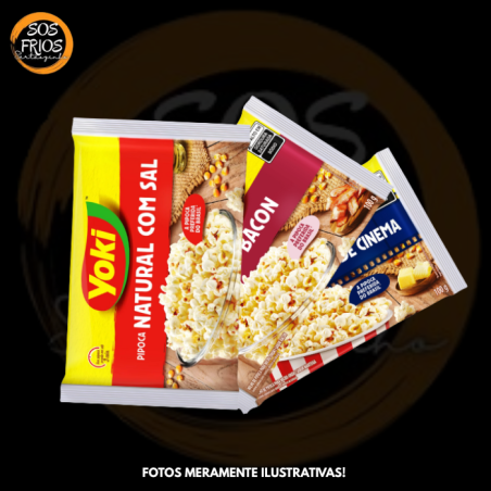 Produto da marca Yoki, embalagem de 100 g, composto por milho de pipoca, gordura vegetal e sal no sabor Natural. Ideal para preparo rápido em micro-ondas.