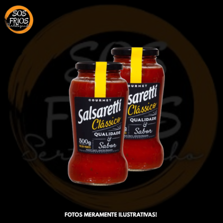 Molho de tomate da marca Salsaretti na versão Clássica, em vidro de 500 g. Elaborado com tomate, cebola, alho, azeite e sal, sem glúten, ideal para massas, pizzas ou preparos rápidos com sabor equilibrado.