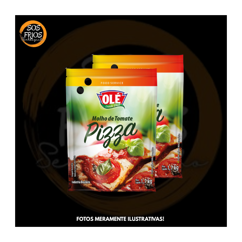 Molho de tomate específico para preparo de pizzas, da marca Olé, em embalagem sachê de 1,7 kg. Apresenta consistência encorpada e tempero leve com ervas e especiarias, ideal para uso profissional ou doméstico.