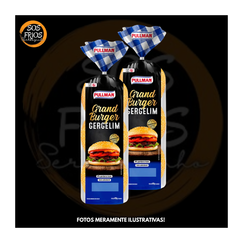 Produto da marca Pullman, embalagem de 420 g com seis unidades, pão para hambúrguer com cobertura de gergelim, desenvolvido para lanches gourmet e alimentação cotidiana.