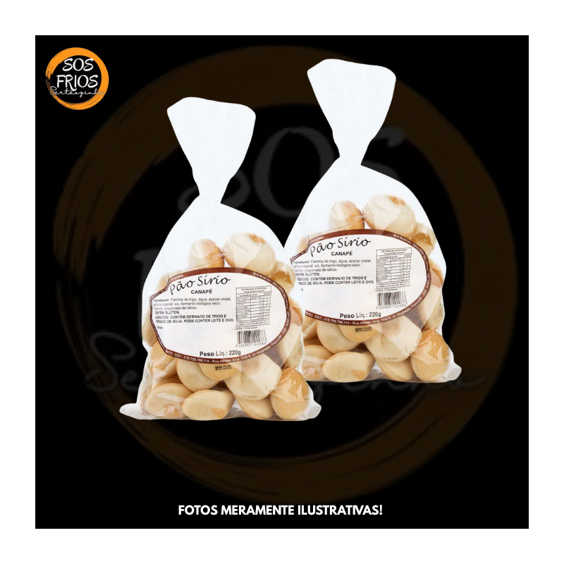 Pão Sírio Canapé Artesanal 220 g — pão sírio estilo canapé, próximo de 220 g por embalagem, de textura fina e leve, pronto para servir com patês, pastas, antepastos ou como base para entradas em buffets e eventos. Ideal também para uso em refeições cotidianas, com praticidade de preparo e apresentação.