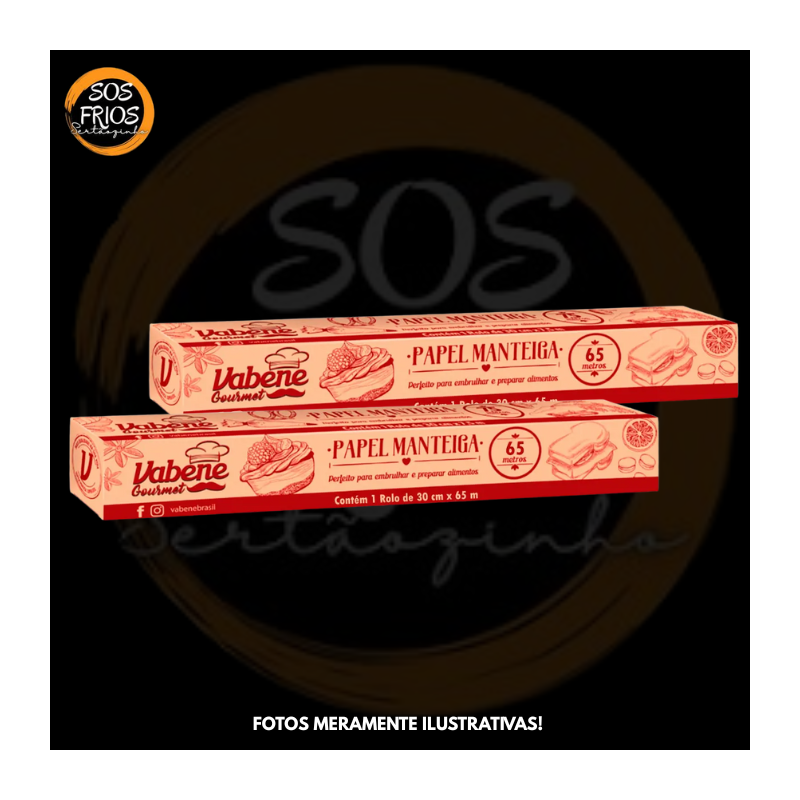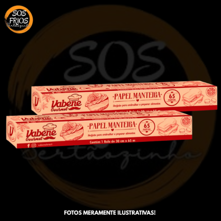 Rolo de papel manteiga da marca Vabene, com largura de 30 cm e comprimento de 65 m. Fabricado especialmente para uso culinário profissional/doméstico, com acabamento antiaderente, indicado para forrar assadeiras, moldes, preparar massas, doces e assados, com a vantagem de reduzir uso de gordura/untante e facilitar limpeza.