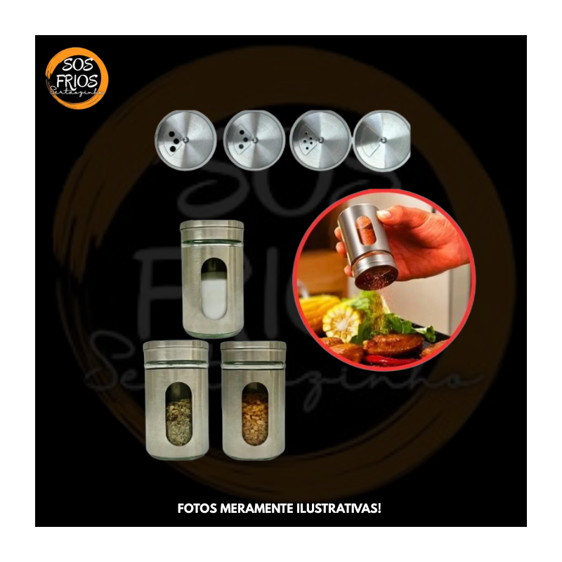 Porta Condimentos Aço Inox Vidro: