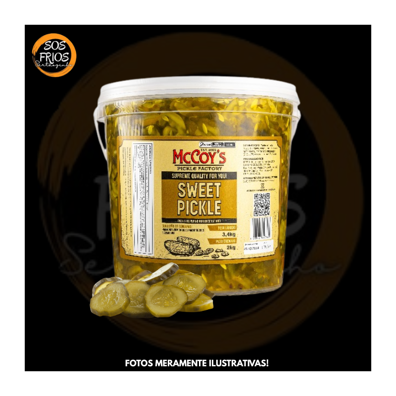 O Pickles Agridoce McCoy's é uma conserva de pepinos em vinagre com especiarias, ideal para petiscar, acompanhar sanduíches ou incrementar saladas. Apresenta baixo valor calórico e é livre de glúten, sendo uma opção saborosa e prática para o dia a dia.