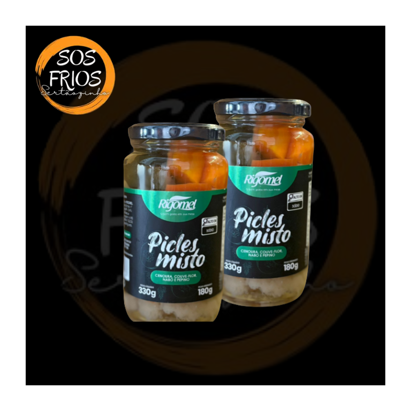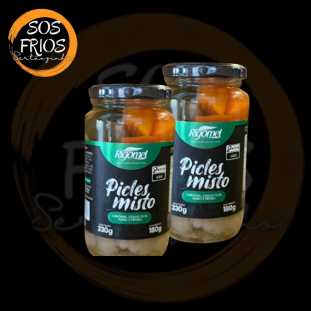 O Picles Misto em Conserva Rigomel combina legumes como cenoura, pepino, couve-flor e outros vegetais selecionados, conservados em vinagre e salmoura. Ideal como acompanhamento de pratos frios, lanches ou aperitivos, é uma opção crocante, saborosa e com baixo teor calórico.