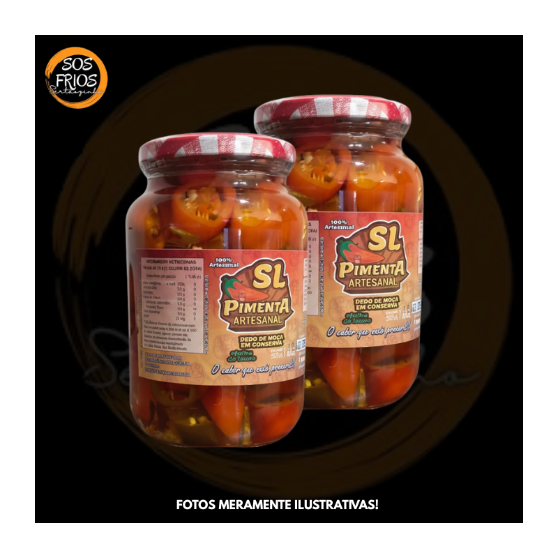 Conserva da marca Pimenta Artesanal SL que traz pimenta dedo-de-moça preservada em salmoura composta por água, vinagre, sal e acidulante. Sabor picante, marcante e versátil, ideal para temperar saladas, molhos, carnes e sanduíches.