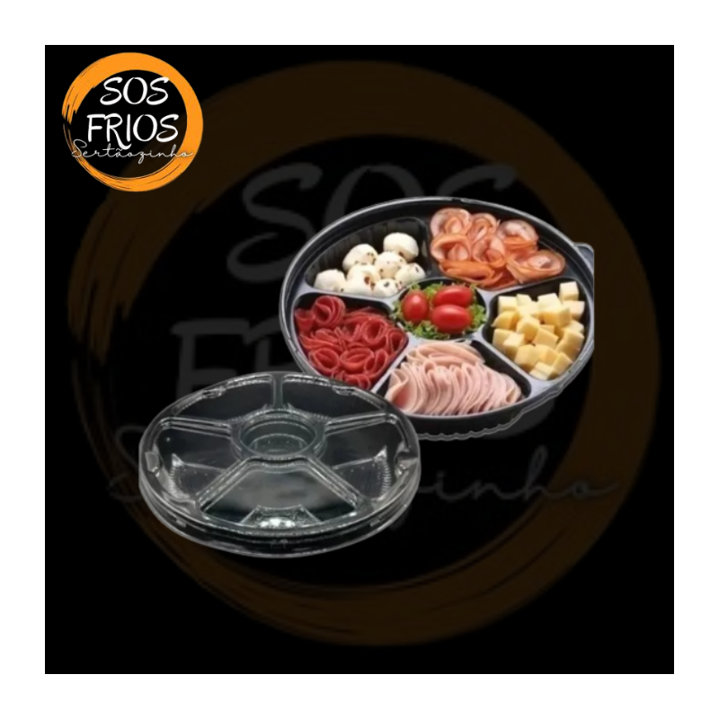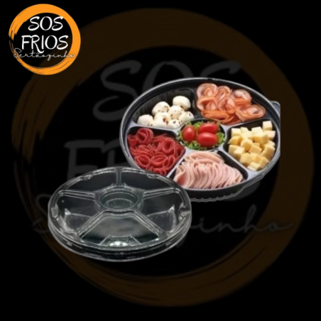 Petisqueira plástica giratória com 5 compartimentos, ideal para servir variados tipos de petiscos com praticidade e estilo. Modelo G550, funcional e perfeito para festas, eventos, etc...