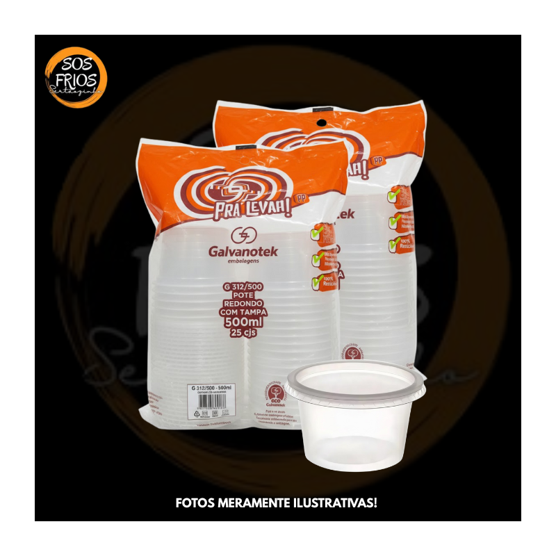 pote redondo de 500 ml com tampa acoplada, fabricado em plástico resistente e transparente. Ideal para armazenar e transportar alimentos, sobremesas e porções, garantindo praticidade e vedação eficiente contra vazamentos.