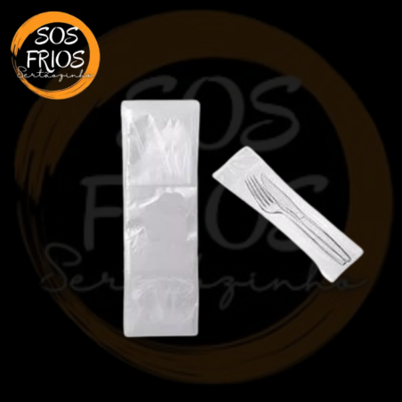 Saco para talher fabricado em plástico virgem, utilizado para embalar talheres, alimentos ou objetos.