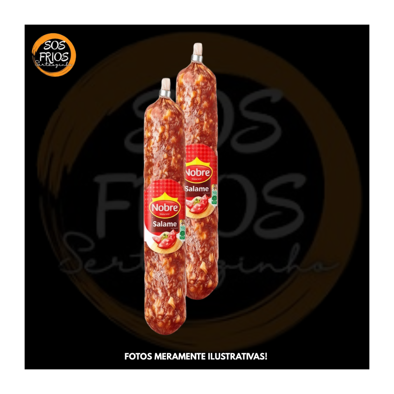Salame Aurora Nobre: Embutido da marca Nobre, tipo italiano, composto por carne suína, toucinho suíno, sal, especiarias e cultura bacteriana. Pronto para consumo, ideal para lanches, tábuas de frios ou aperitivos.