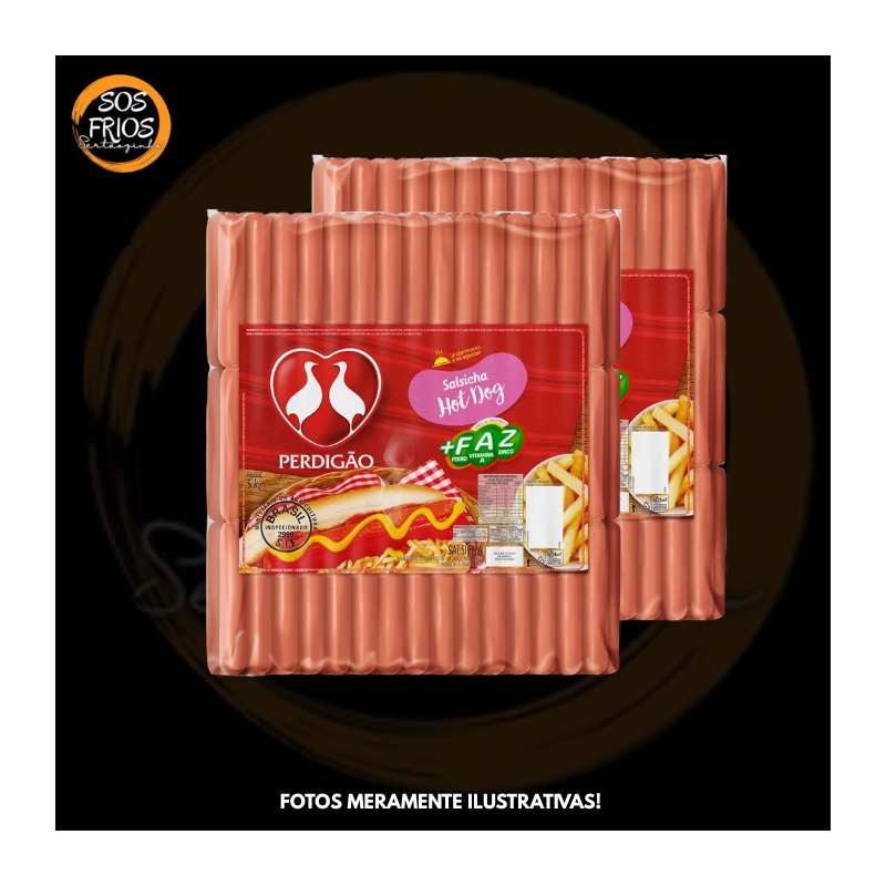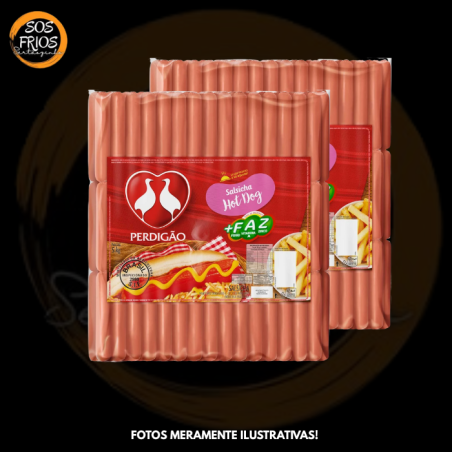 Salsicha tipo hot dog da marca Perdigão, vendida por quilo, ideal para hot-dogs, sanduíches e eventos de grande escala. Exemplos de preços observados:
