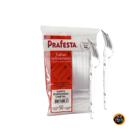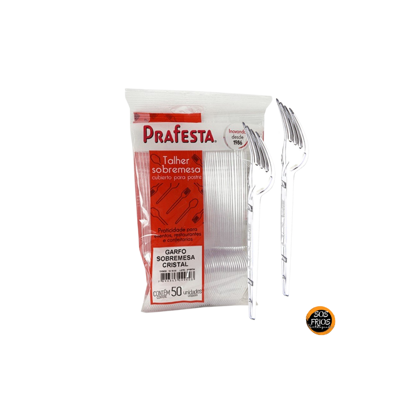O Garfo de Sobremesa c/50 un é um talher leve, geralmente descartável, usado para servir doces, tortas e sobremesas em eventos ou no serviço de confeitaria. Pode ser fabricado em plástico (PS, PP) ou outros materiais descartáveis, com dimensões menores que garfos de refeição e três dentes para facilitar o corte leve de sobremesas.