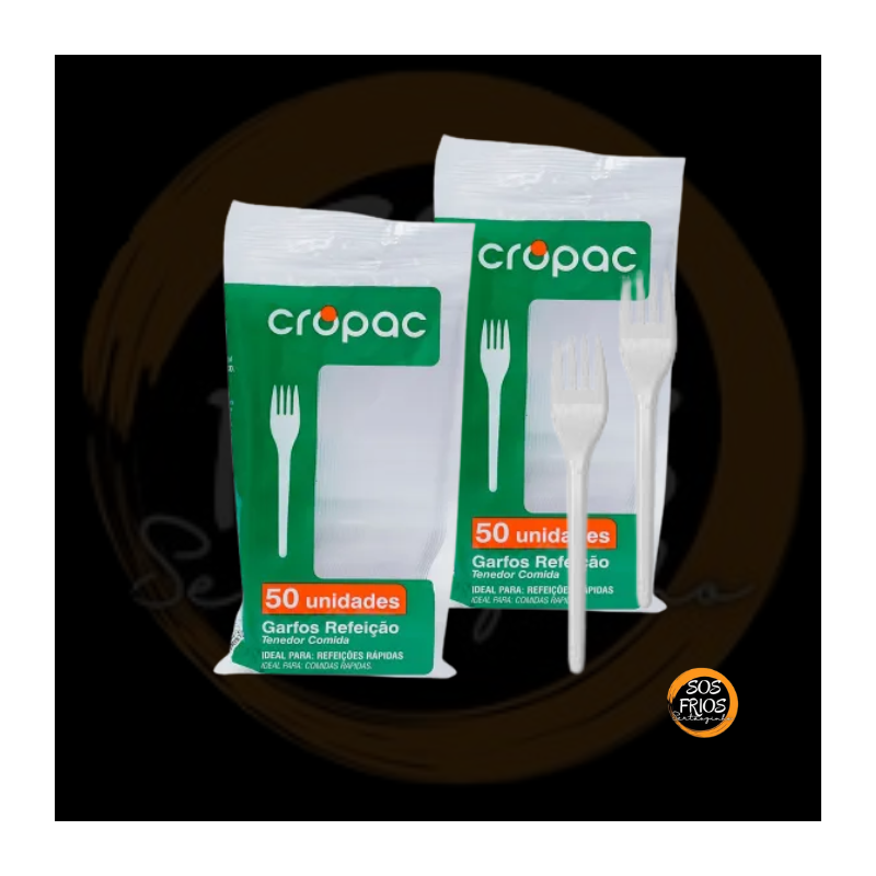 Conjunto com 50 unidades de garfos descartáveis da marca Cropac, voltado ao uso em refeições rápidas, eventos, catering e estabelecimentos que demandam utensílios descartáveis. Fabricado em poliestireno (PS) rígido e atóxico, na cor cristal (transparente), oferece equilíbrio entre leveza e resistência. Possui dimensão padrão de aproximadamente 25 × 155 mm conforme especificações da própria Cropac.