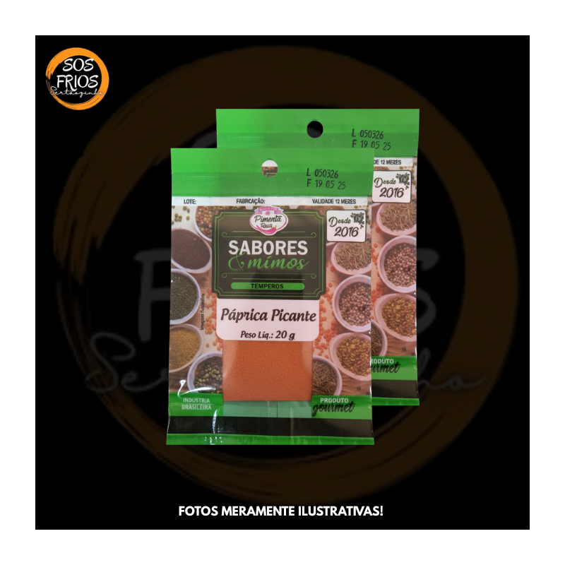 Temperos em embalagem de 20 g, mistura de páprica picante com leve toque de pimenta rosa — ideal para dar cor, sabor intenso e um leve ardor a carnes, molhos, grelhados ou pratos que pedem destaque.