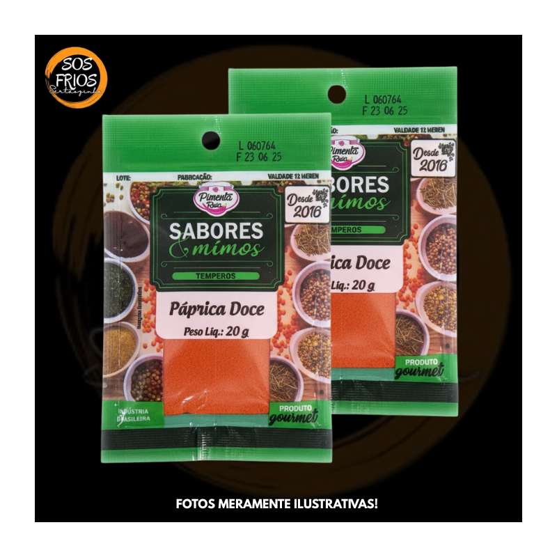Mistura de páprica doce em embalagem de 20 g com destaque para sabor suave e aroma delicado, ideal para realçar a cor e o sabor de diversos pratos sem adicionar ardência.