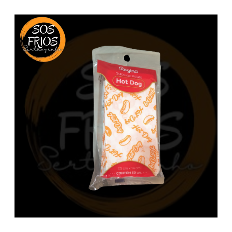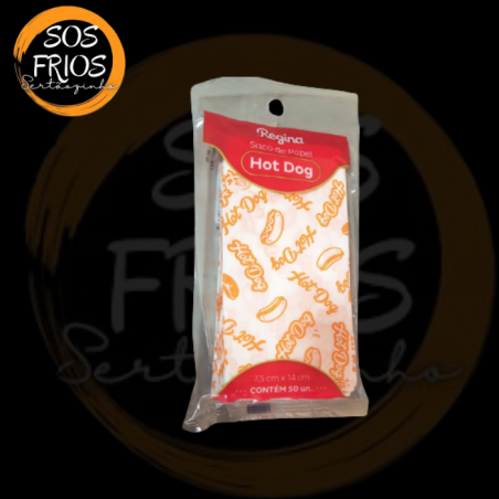 Saco de Papel para Hot Dog com 50 UN medindo 7,5x14cm com desenhos laranjas