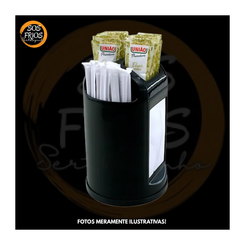 Suporte multifuncional prático que reúne porta-guardanapos, porta-canudos e compartimento para sachês em um único corpo. Feito em plástico resistente ou inox, otimiza espaço e mantém a organização de mesas em lanchonetes, bares e restaurantes, garantindo praticidade e higiene no atendimento.