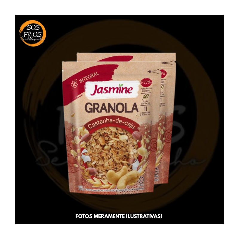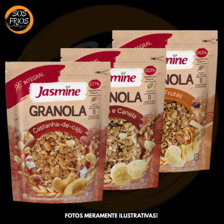 A Granola Integral Cereais Maltados Jasmine (250 g) é um cereal matinal vegano que combina diversos ingredientes integrais, frutas secas e sementes. Ela contém uma alta porcentagem de ingredientes integrais (> 65 %), é enriquecida com vitaminas e minerais, possui baixo teor de gorduras saturadas e não contém gorduras trans. É indicada para quem busca uma alimentação rica em fibras, com energia gradual para manhãs ou lanches.